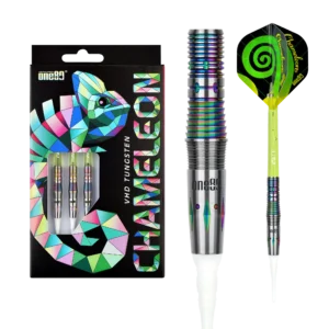 Benannt nach dem farbenfrohen Chamäleon besticht auch die gleichnamige One80 Serie mit einem auffälligen stylischen Look. Alle Modelle der Chameleon Serie wurden mit einem mehrfarbigen Rainbow Coating beschichtet und aus 90%igen Tungsten gefertigt. Neben dem Aussehen ist auch jedes der verschiedenen Gripmuster außergewöhnlich gestaltet.