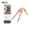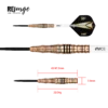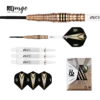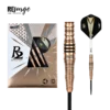 Der neue One80 R2 Interchange Re-surge Steeldart. Optisch in bronze mit schwarzen Highlights designed, beinhalten die Darts das einzigartige R2-System. Damit lassen sich Spitzen in Sekundenschnelle austauschen. An einem Dart kann sowohl die 2,35mm, wie auch die 2,0 und 1,5mm dicke Spitze gespielt werden. Ebenfalls lässt sich der Kopf abdrehen, und sich der Dart ganz leicht in einen Softdart mit 2BA-Gewinde umwandeln. Besonders ist bei diesem Modell die besondere Barrelform. Diese hat im vorderen Bereich eine stark zulaufende Form, inklusive Griffmulde mit einem feinen Ringgrip. Im hinteren Bereich wurde ein variabler, gröberer Ringgrip mit Einschnitten verarbeitet.